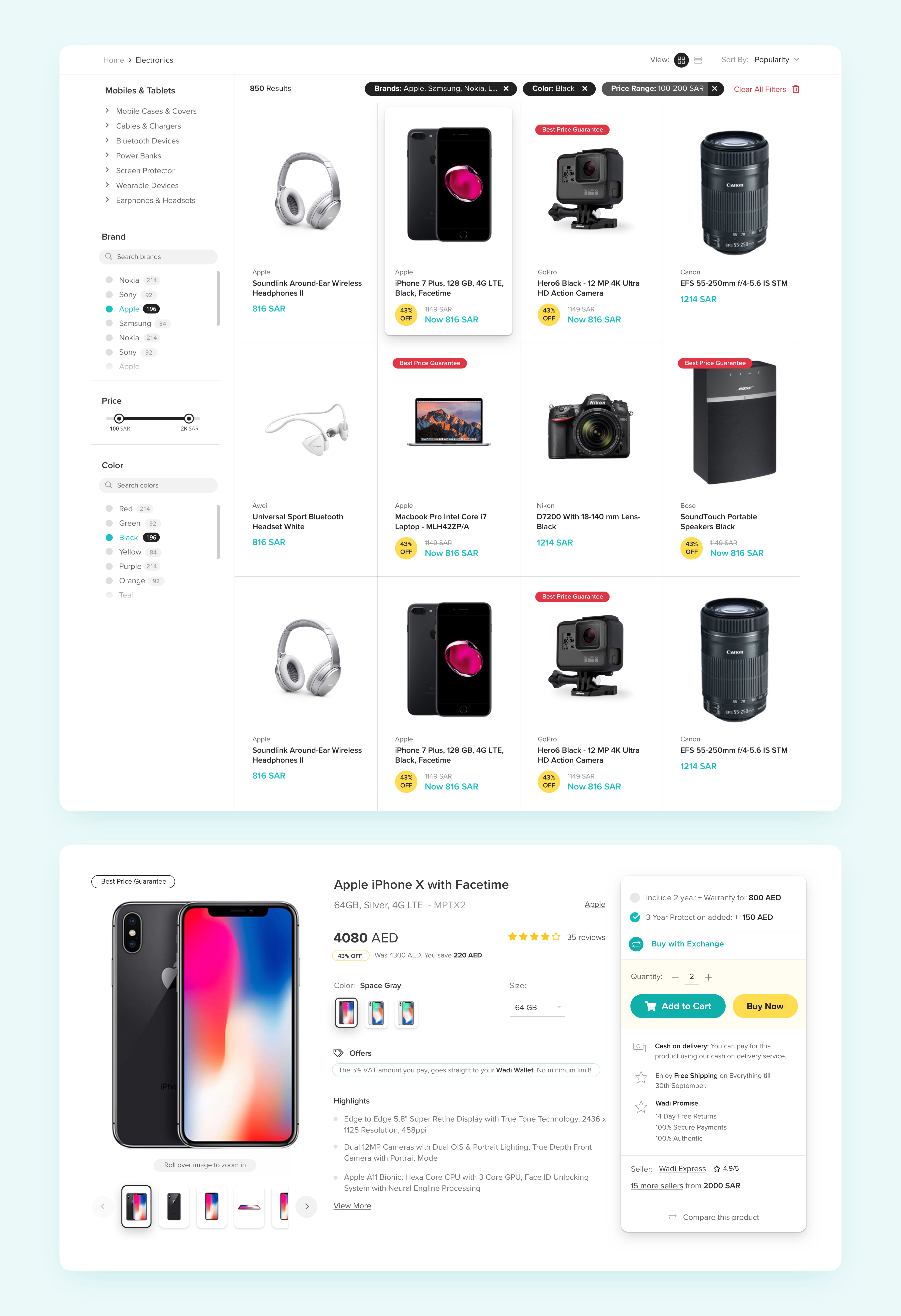 With over 30 million customers, Wadi was a large scale online retail platform in Middle East, which was later acquired by Majid Al Futtaim group. As their design lead, I was responsible with defining and creating UX and Product design materials for the purpose of sales conversion.